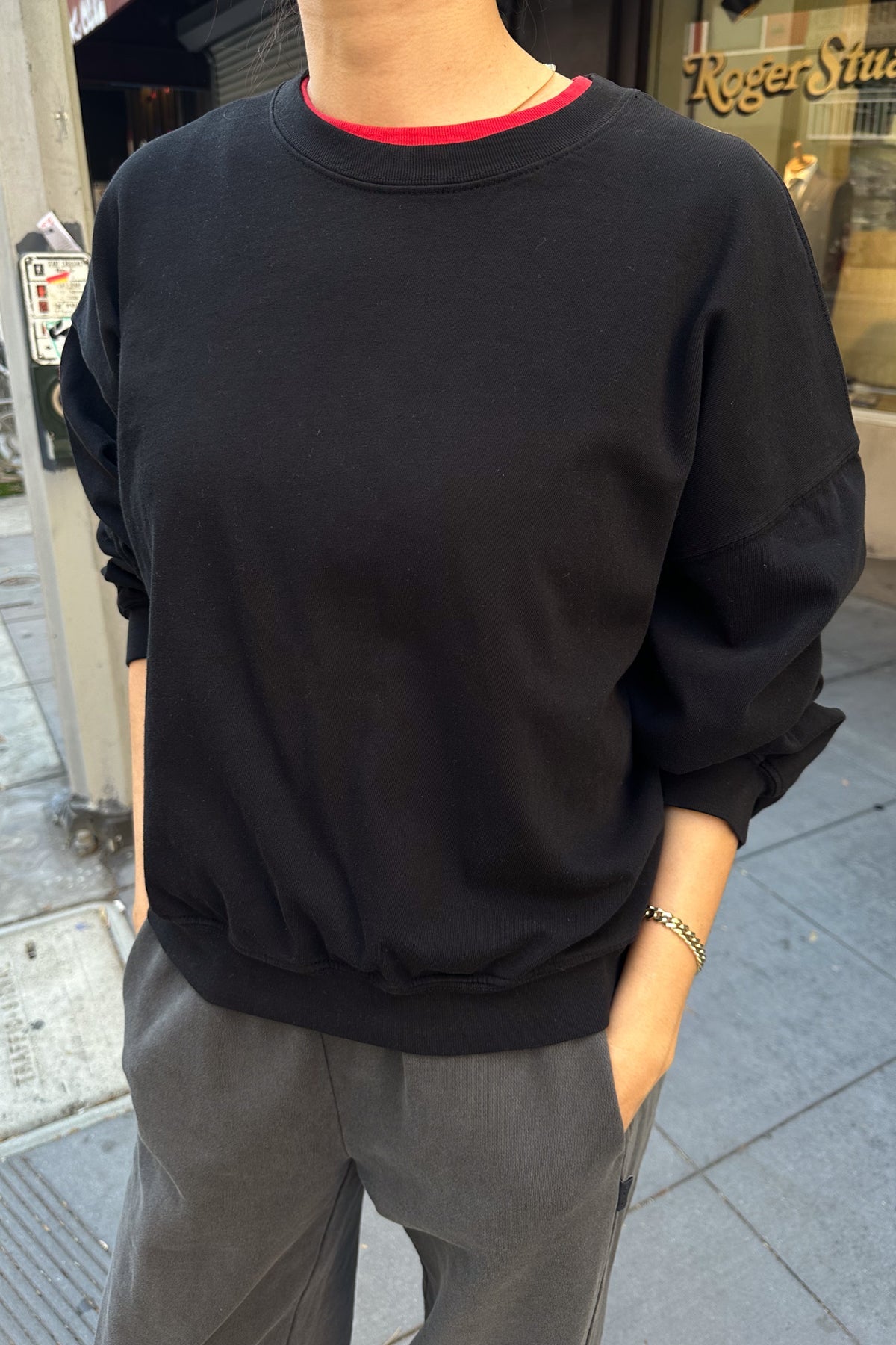 The Cali Jersey Sweatshirt blends the best of The Little Boy Tee and the Poche Top for a playful take on the classic crewneck. Crafted from 100% premium cotton jersey, it offers the lightweight feel of the Little Boy Tee, making it ideal for layering under jackets. It also borrows signature details from the Poche Top, like a ribbed crew neckline and relaxed balloon sleeves. Designed with a slightly oversized fit, it features a perfectly cropped length, creating the perfect balance of style and comfort.