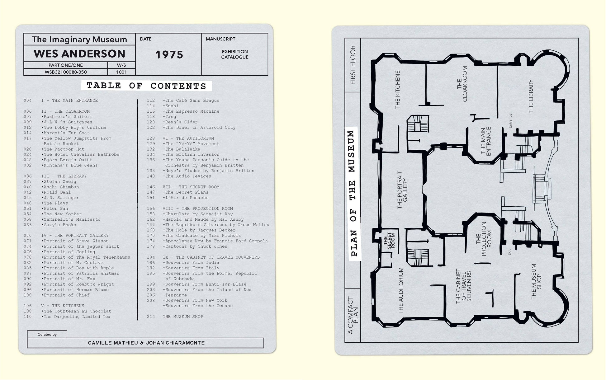 Among the museum’s artifacts are a recipe for a ham sandwich from The French Dispatch’s Le Sans Blague café; the history of Tang—the drink of choice for the campers in Moonrise Kingdom; and the secret of L’Air de Panache, the cologne worn by the concierge of the Grand Budapest Hotel.